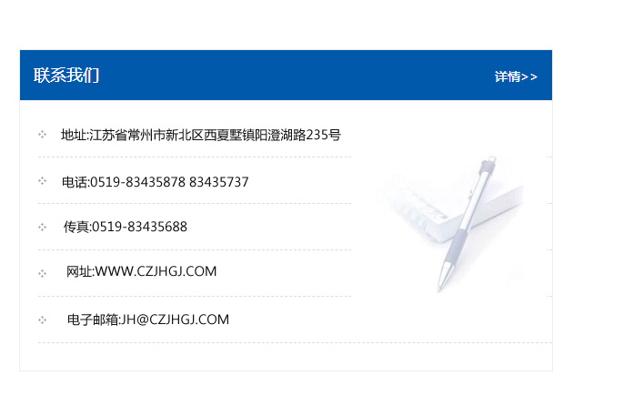 傳真:0519-83435688    郵編:213135    網址:WWW.czjhgj_com.sjmnm.com    電子郵箱:JH@czjhgj_com.sjmnm.com